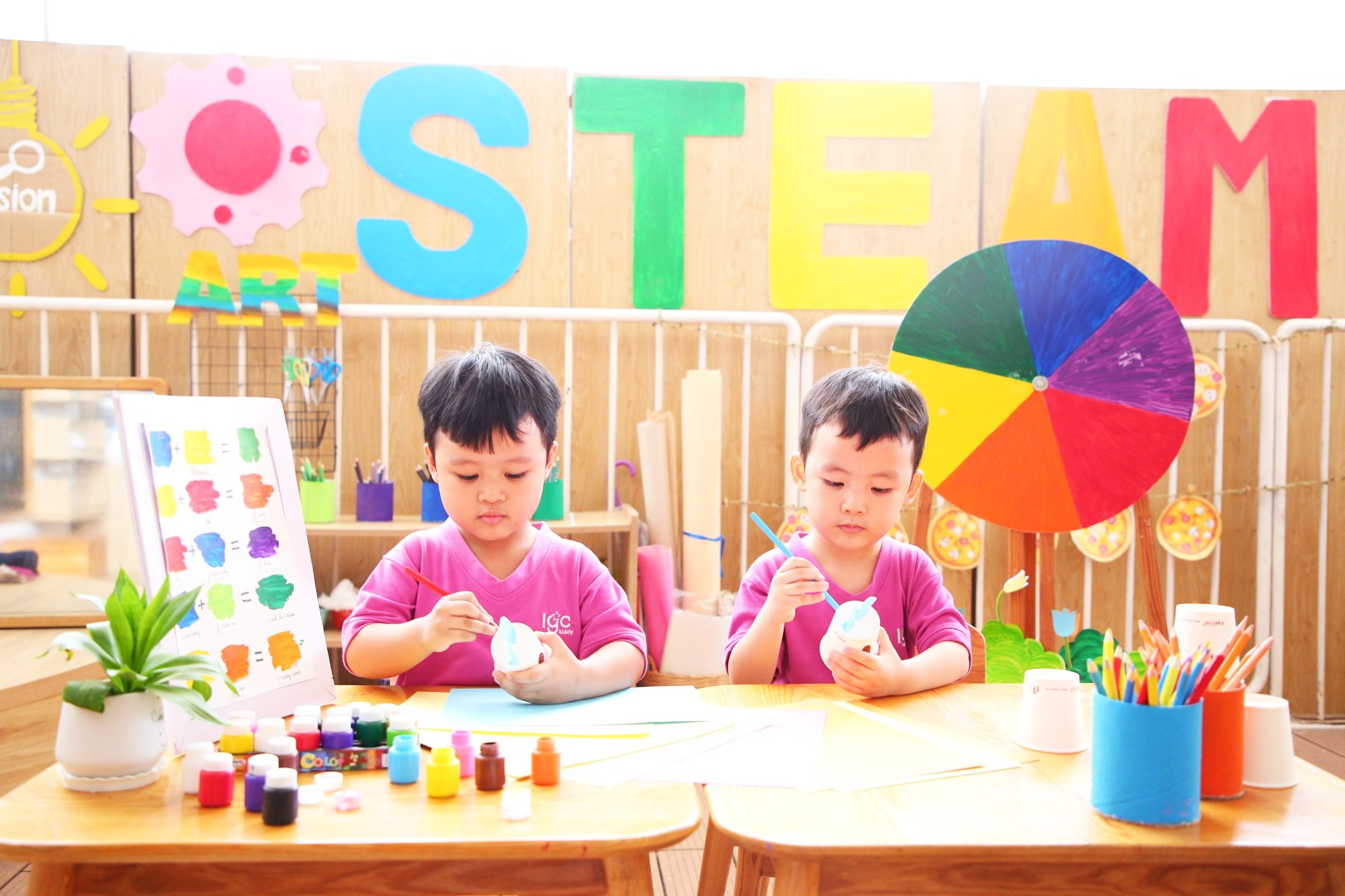 Với STEAM trẻ học được cách tư duy như nhà khoa học, biết giải quyết vấn đề như kỹ sư - kỹ thuật viên, có tinh thần sáng tạo như nhà sáng chế, biết cách vận dụng tri thức đa lĩnh vực, phát huy tính sáng tạo, giải quyết các vấn đề phát sinh trong đời sống thực tế. STEAM là con đường sáng tạo và hấp dẫn để trẻ hòa mình và trải nghiệm tích cực với các dự án học tập trong năm học. Việc tiếp nhận những kiến thức của trẻ lúc này sẽ không dừng ở góc độ tiếp nhận một chiều một cách thụ động mà sẽ là những buổi hoạt động tập trung, hứng thú, với những ý kiến cá nhân đầy sáng tạo của trẻ. Lúc này, trí tò mò của trẻ được thỏa mãn và hơn hết tình yêu, niềm đam mê với công nghệ được nảy sinh. Trải nghiệm dự án với STEAM sẽ giúp trẻ hoàn thiện những kiến thức, phát triển tư duy, có thái độ tích cực và thành thạo những kỹ năng cần thiết, tăng cường sự tự tin và bản lĩnh hơn mỗi ngày. Với mục tiêu kiến tạo môi trường học tập hạnh phúc và sáng tạo cho những công dân toàn cầu, thông qua các hoạt động trải nghiệm, khám phá thế giới xung quanh, các con sẽ có nhiều kỷ niệm đáng yêu trong suốt tuổi thơ của mình tại IGC Kiddy.