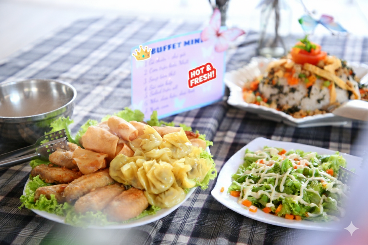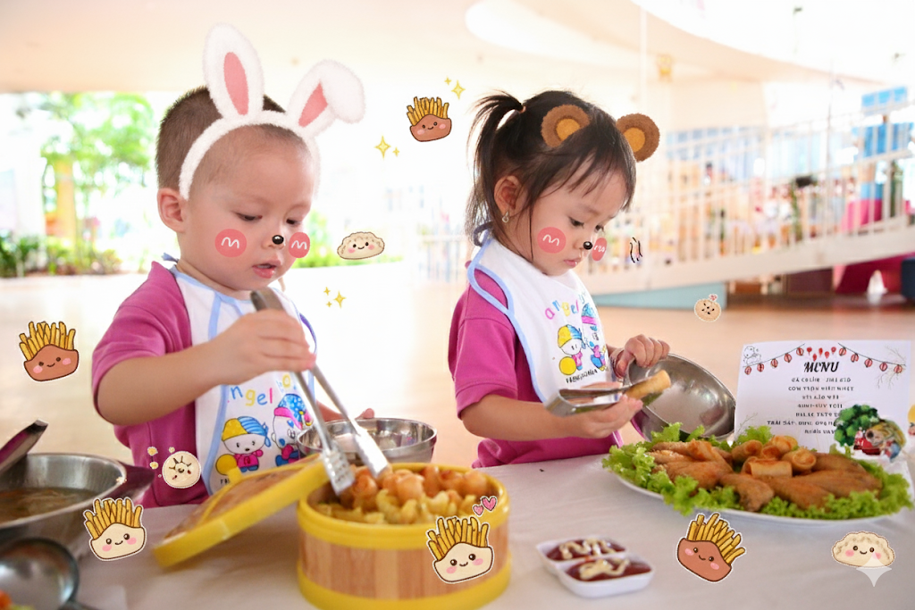 Trong không gian lớp học thân quen, các bé đã cùng nhau tham gia bữa tiệc buffet mini đầy thú vị. Bé được tự tay lựa chọn những món ăn ngon, được trình bày đẹp mắt. Thực hành ăn uống lịch sự, gọn gàng. Học cách xếp hàng, chờ đến lượt.
