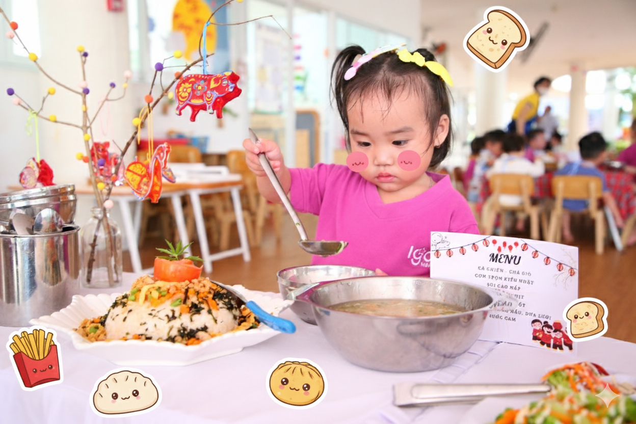 Tại Mầm non IGC Bến tre, mỗi bữa ăn đều là một hành trình trải nghiệm thú vị!
