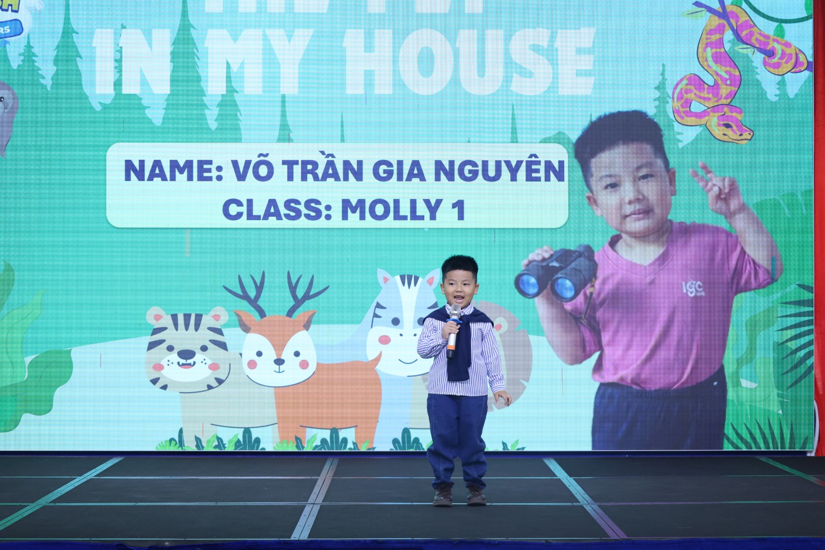 Tại vòng thi quan trọng này, các bé không chỉ thể hiện khả năng sử dụng tiếng Anh một cách tự tin, mà còn mang đến những phần trình bày sáng tạo, giàu cảm xúc. Mỗi câu chuyện, mỗi ý tưởng được chia sẻ chính là minh chứng cho sự trưởng thành vượt bậc của các con trong hành trình học tập và khám phá ngôn ngữ.